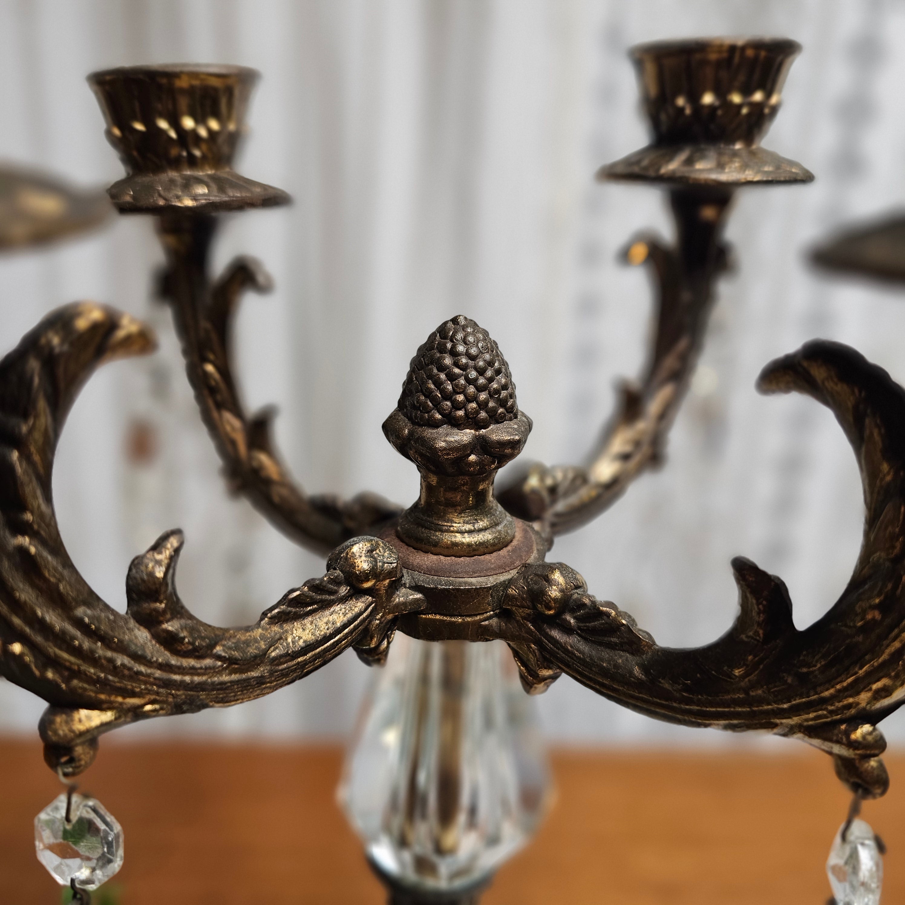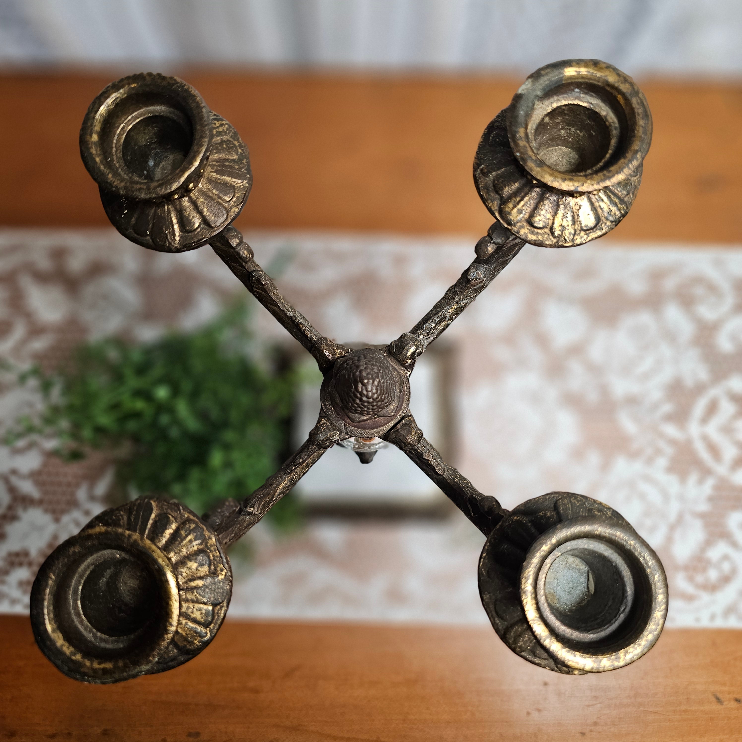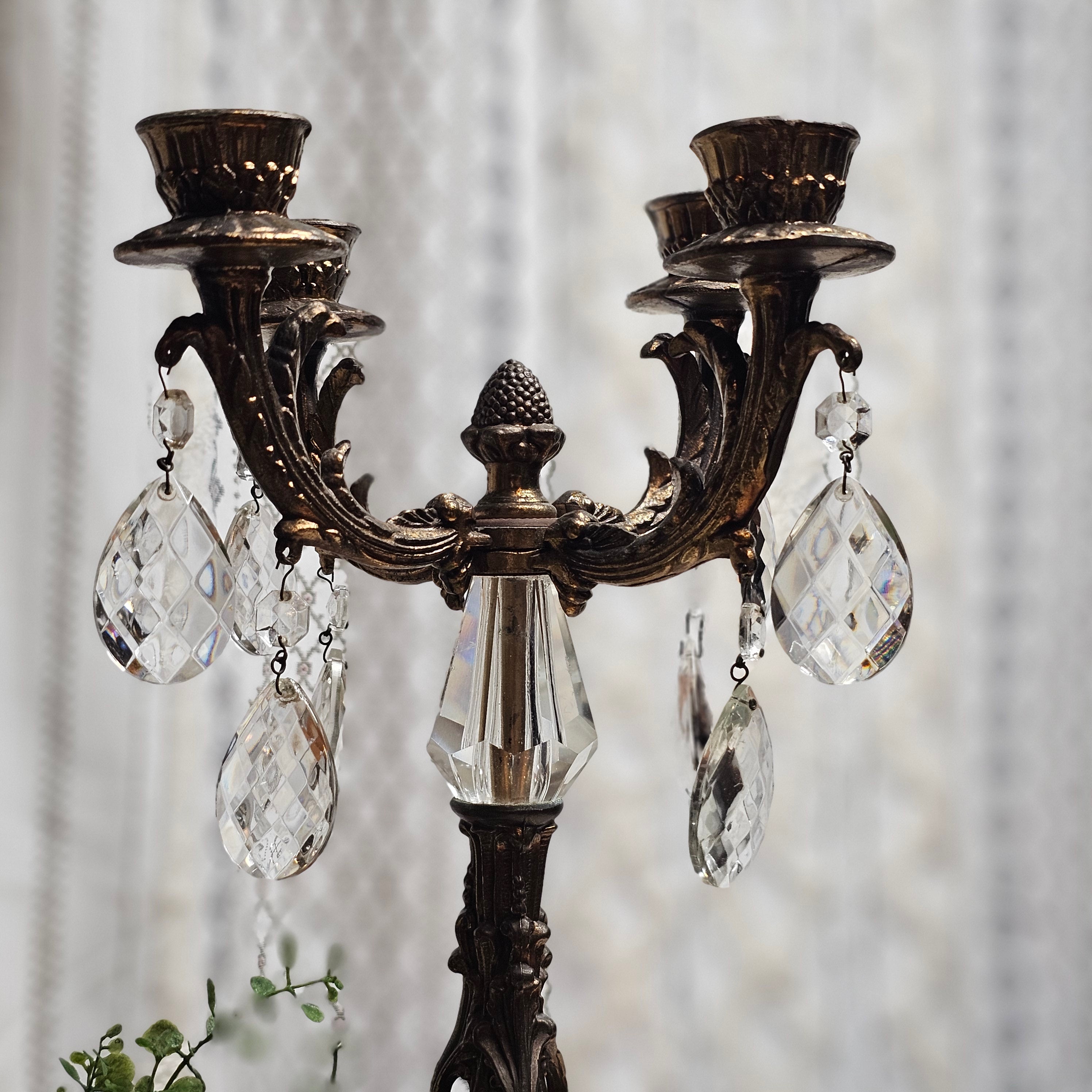 Antique Ornate French Rococo 4-Arm White Marble and Brass Candelabra