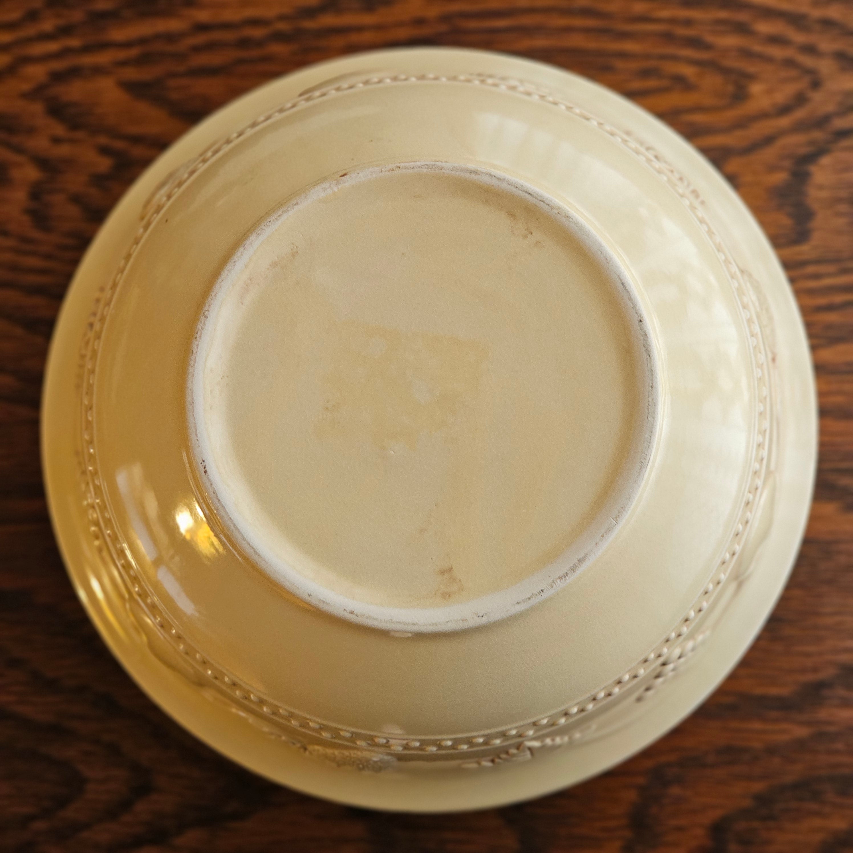11.5" Antique Yellow Embossed Fruit Design Stoneware Mixing Bowl