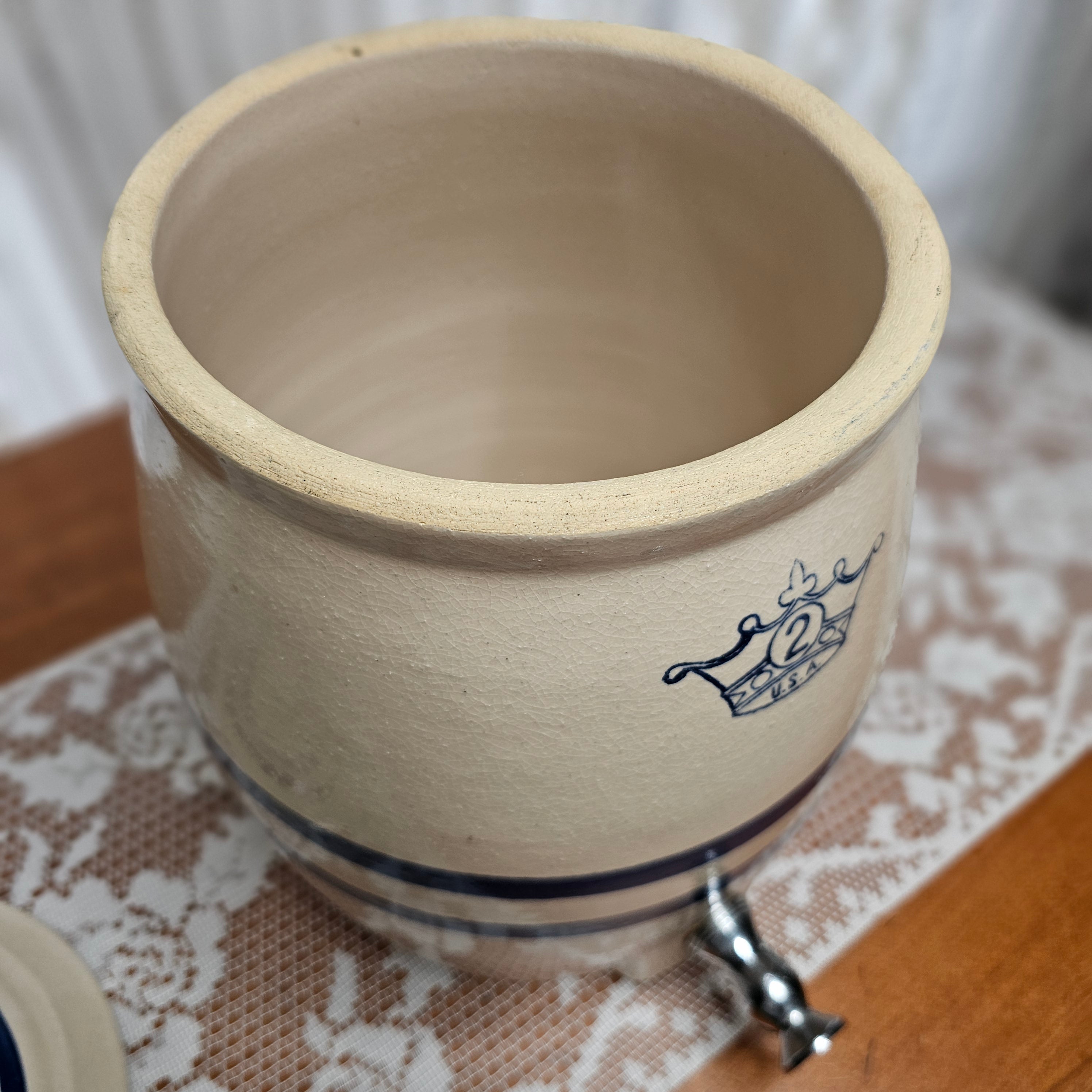 Vintage Robinson Ransbottom Blue Crown 2 Gallon Stoneware Crock With Spigot