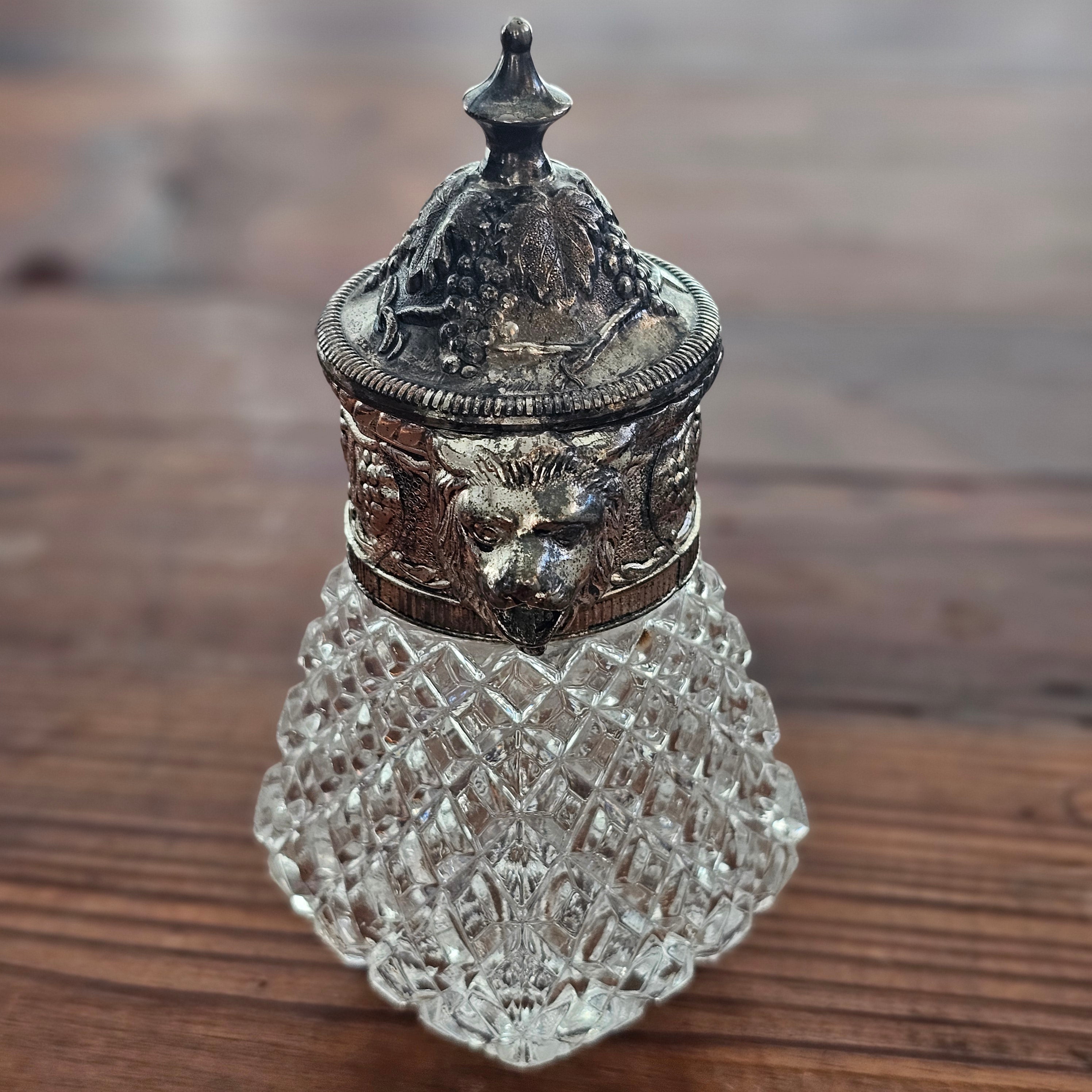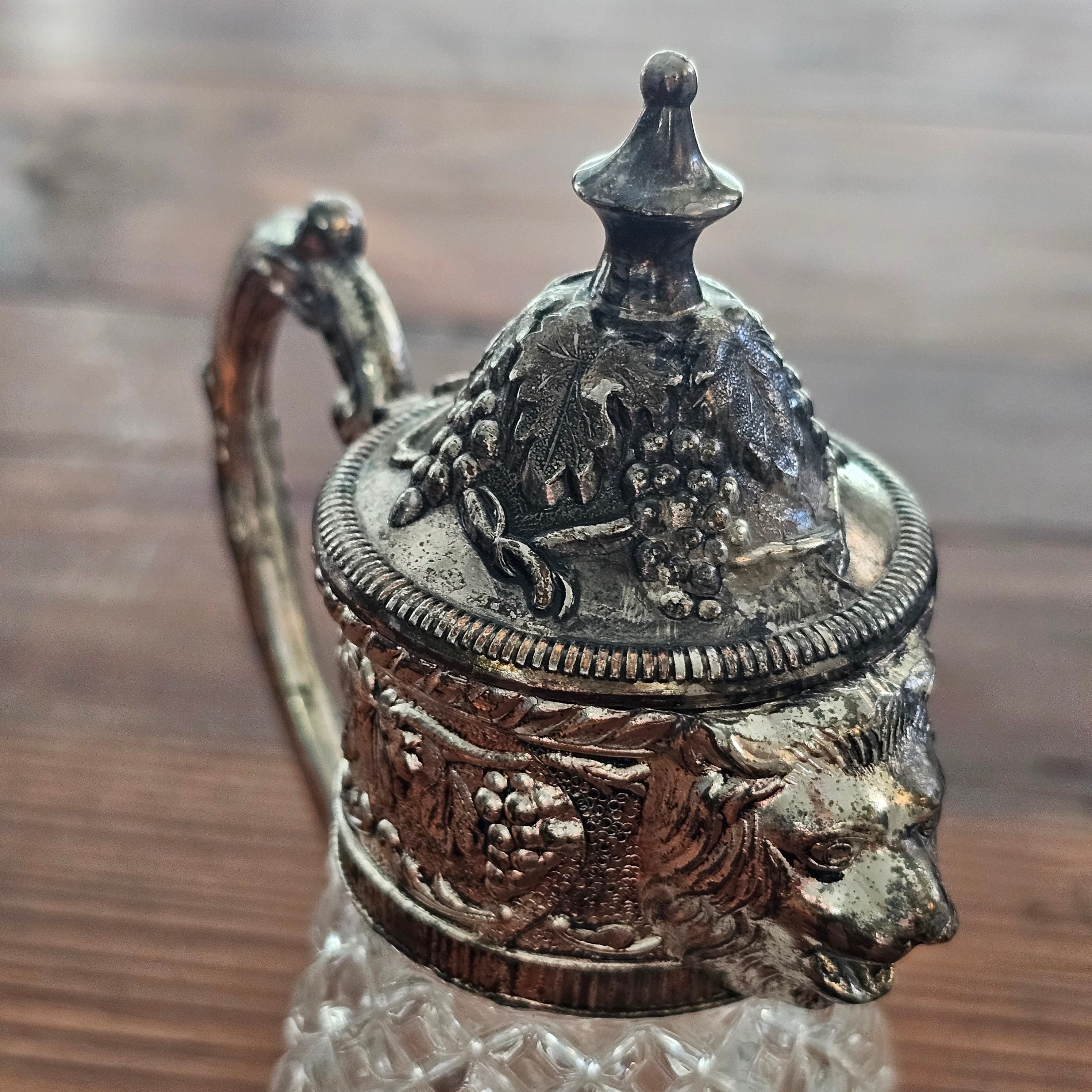 Vintage Silver Plated and Hazel Atlas Crystal Lion's Head Syrup Pitcher