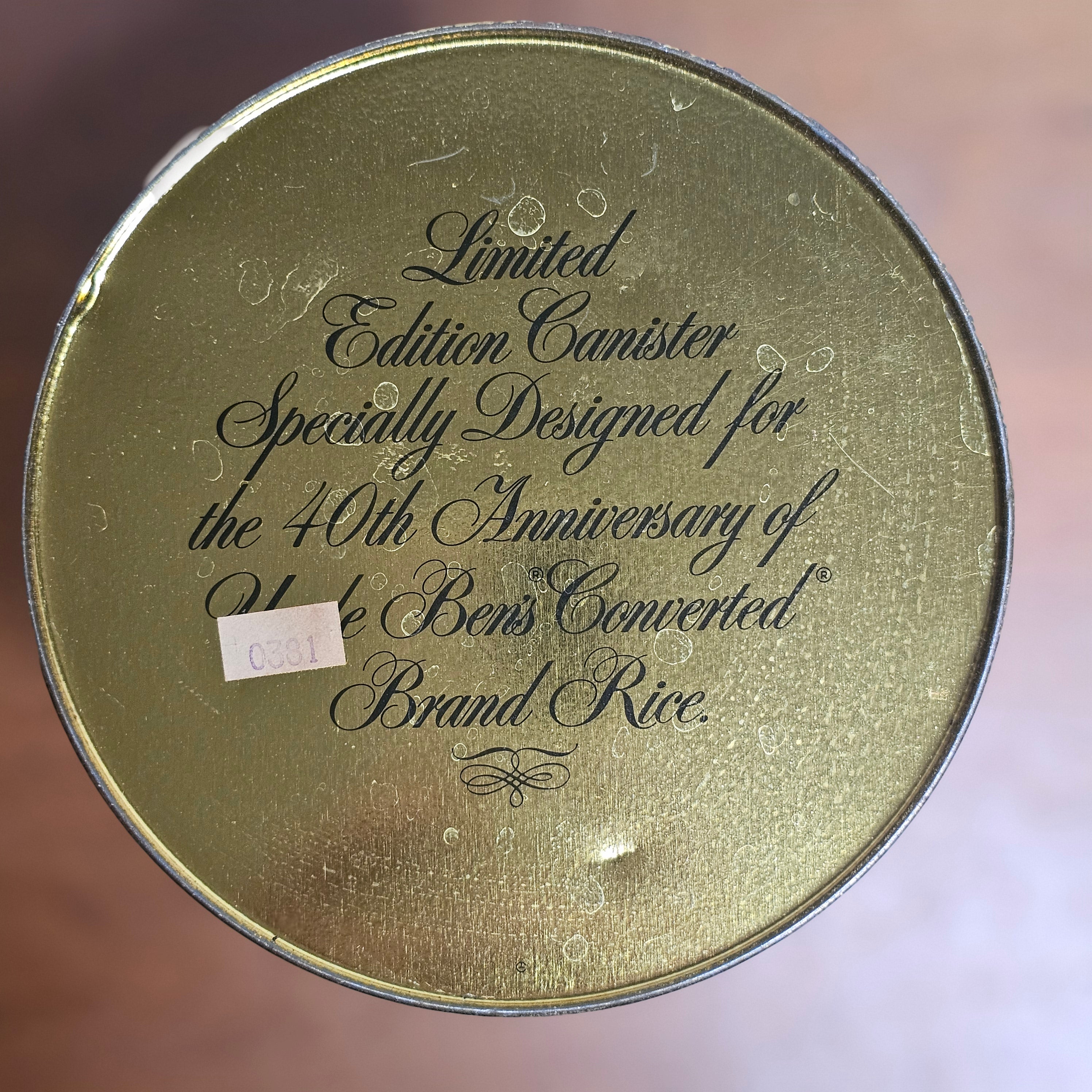 Vintage Uncle Ben's 1983 40th Anniversary Tin Last stock! Vintage Uncle Ben's 1983 40th Anniversary Tin Product form 1 in stock $15.00 Quantity Add to cart This item is a deferred, subscription, or recurring purchase. By continuing, I agree to the cancellation policy and authorize you to charge my payment method at the prices, frequency and dates listed on this page until my order is fulfilled or I cancel, if permitted. Guaranteed secure & safe checkout.
